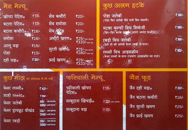 Vijay Chaat House Menu Menu For Vijay Chaat House Sarafa Bazaar Indore